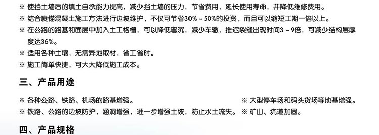 1. 增強路基,可有效地分配擴散載荷,提高路基的穩(wěn)定性和承載力,延長使用壽命;