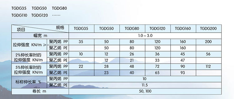 該產(chǎn)品適用于修建公路、鐵路以及江河湖海岸邊的加筋檔土墻、堤壩、橋面、陡坡及土工格室等工程。其作用是可提土墻或堤壩的承載力,延長使用壽命,減少占地面積,縮短工期,降低造價,減小維修費用。