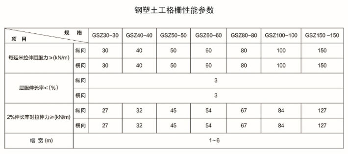 鋼塑復(fù)合土工格柵是用聚丙烯、聚氯乙烯等高分子聚合物經(jīng)熱塑或模壓而成的二維網(wǎng)格狀或具有一定高度的三維立體網(wǎng)格屏柵。由于塑料土工格柵在制造中聚合物的高分子會(huì)隨加熱延伸過程而重新排列定向,加強(qiáng)了分子鏈間的聯(lián)結(jié)力,達(dá)到了提高其強(qiáng)度的目的。其延伸率只有原板材的10%~15%。如果在土工格柵中加入炭黑等抗老化材料,可使其具有較好的耐酸、耐堿、耐腐蝕和抗老化等耐久性能。